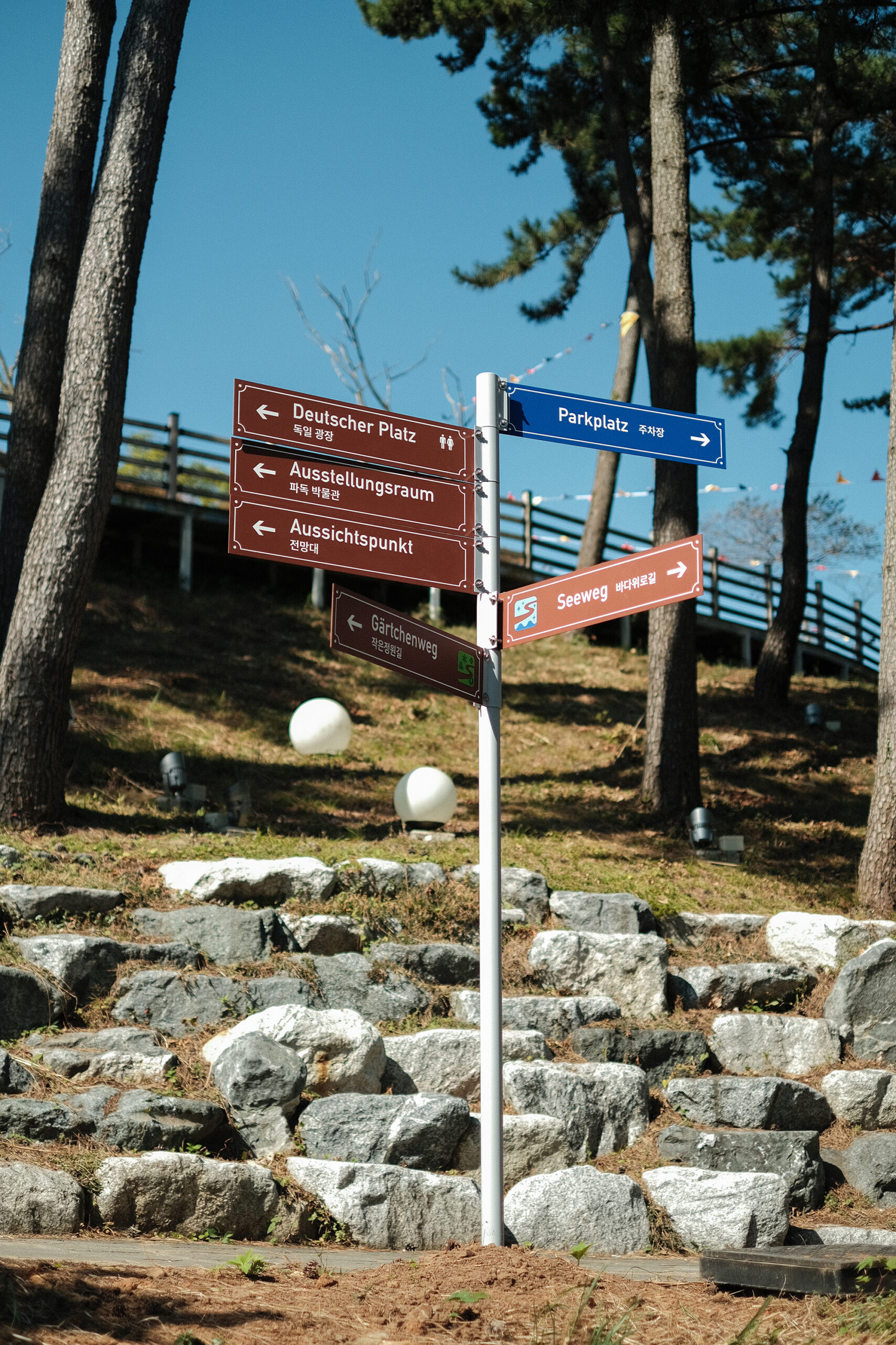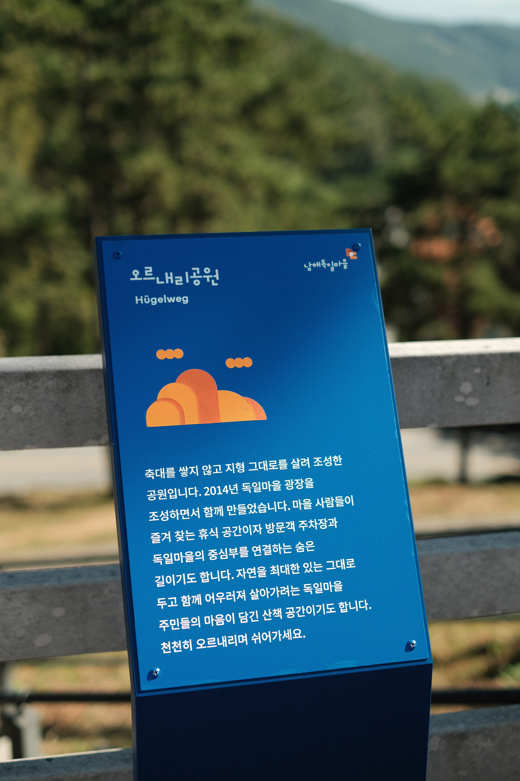 독일과 한국의 경관, 문화, 언어 등이 함께 존재하는 이국적이면서 한국적인 공간인 남해독일마을의 장소성을 표현했습니다. 남해 독일마을이라는 장소 브랜드를 방문객들이 걸으며 체험할 수 있도록 안내 시스템을 설계한 후 시설물을 디자인했습니다.