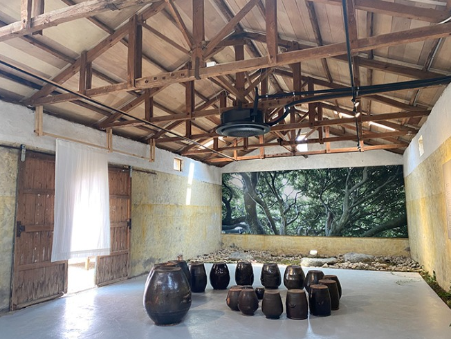 첫 행선지로 함께 한 k가 가보고 싶다던 카페이자 전시 공간인 ‘남해 돌창고’에 도착했다. 여러 가지 프로젝트를 소개하고 있었는데 그중에서 카페 옆 돌로 된 창고에서 진행하는 전시도 있었다. 창고를 가득 채운 나무 사진들은 보기만 해도 시원했다.